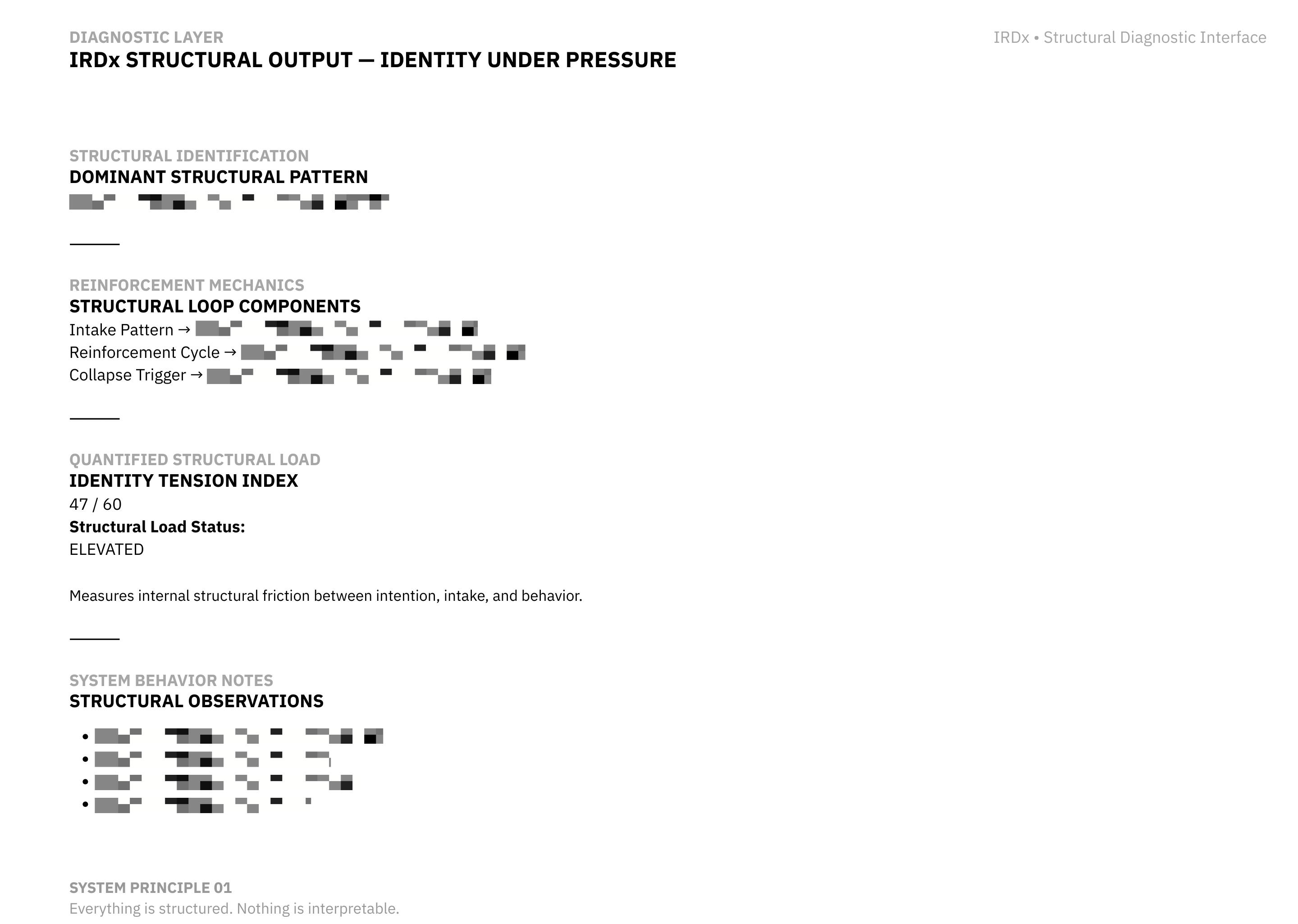diagnostics that surface identity structure under pressure